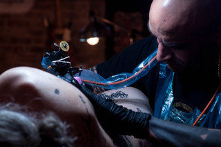 I spent my Wednesday in Hackney Wick at The Lacemakers Sweatshop. I couldn't have imagined a warmer welcome, what a beautiful shop. Whilst I got to work with Capitaine Plum, who was in town on a guest spot from Brussels, Cy Wilson continued to work on this full body peice. Couldn't resist, here are a few shots.